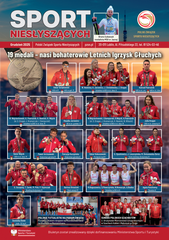 Publikacja stanowi obszerne podsumowanie najważniejszych wydarzeń sportowych oraz sukcesów polskich sportowców niesłyszących w 2025 roku. Szczególne miejsce poświęcono osiągnięciom reprezentacji Polski podczas Letnich Igrzysk Głuchych, podczas których biało-czerwoni zdobyli łącznie 19 medali, potwierdzając wysoki poziom sportowy oraz skuteczność systemu szkolenia.