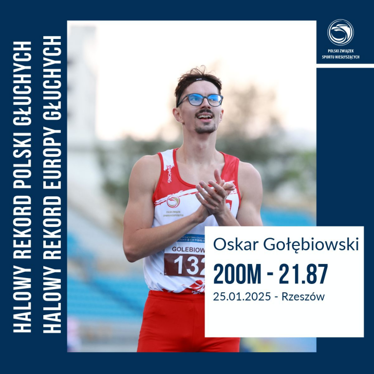 W dniu 25 stycznia 2025 roku na zawodach z słyszącymi lekkoatletami na 2. Ogólnopolskiego Halowego Mityngu POZLA w Rzeszowie zawodnik z Lubelskiego Klubu Sportowego Głuchych „Spartan” / AZS UMCS Lublin Oskar Gołębiowski w biegu na 200m pobił nowy Halowy Rekord Polski i Europy Głuchych z czasem 21.87s. Poprzedni rekord Polski Oskara wynosił 22.11s. w dniu 28 stycznia 2023 roku w Rzeszowie.
