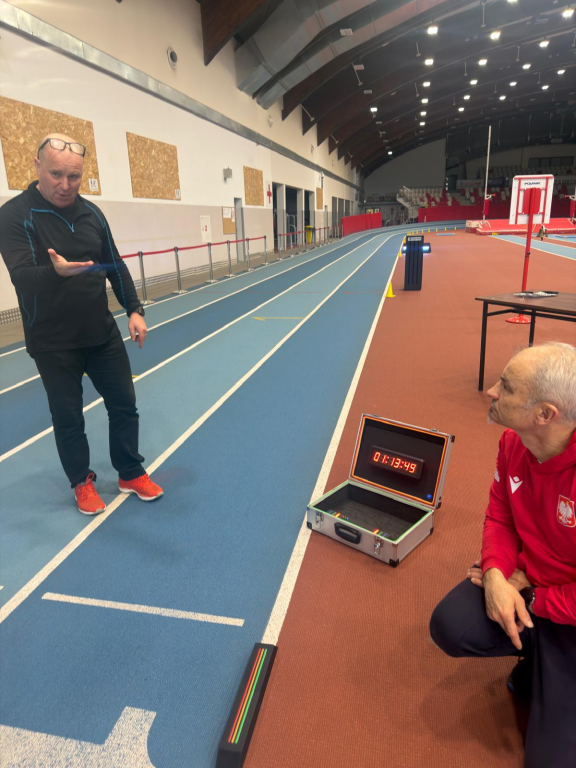 Głównym celem spotkania było omówienie, prezentacja oraz praktyczne przetestowanie systemu pomiaru świetlnego startu, który w przyszłości może zostać wdrożony podczas zawodów organizowanych przez PZSN zarówno w lekkoatletyce, jak i w innych sekcjach sportowych m.in. w pływaniu, piłki nożnej, koszykówce. Testy obejmowały sprawdzenie precyzji działania urządzeń, analizę czasu reakcji zawodników, weryfikację wykrywania falstartu, możliwości konfiguracji w warunkach halowych i stadionowych oraz integrację z elektronicznym pomiarem czasu. Podczas rozmów podkreślono, że PZSN dysponuje obecnie systemem pomiaru świetlnego, który jest użytkowany nieprzerwanie od 2011 roku. Ze względu na długoletnią eksploatację sprzętu oraz postęp technologiczny zasadne jest rozważenie jego modernizacji lub zakupu nowego systemu w przyszłości.