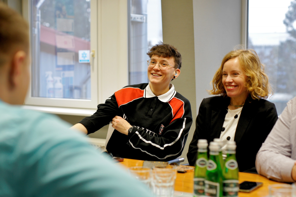 Ze strony gospodarzy udział wzięli Pan Krzysztof Murawski - Dyrektor Produkcji Aparatów Zausznych w Mierzynie, oraz Pani Anna Czyżewska - koordynator zespołu komunikacji i wizerunku pracodawcy. Spotkanie przebiegało z pełnym wsparciem komunikacyjnym - obecny był również tłumacz języka migowego PJM, Pan Zenon Iskra z Oddziału Zachodniopomorskiego Polskiego Związku Głuchych w Szczecinie.